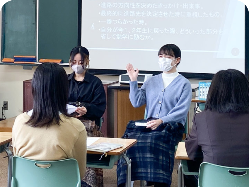 大学入試で求められる表現力向上のためのトレーニングや上級生・卒業生からの進学・受験アドバイス、高大連携授業、コース交流会など、一人ひとりに合った進路実現をサポートします。