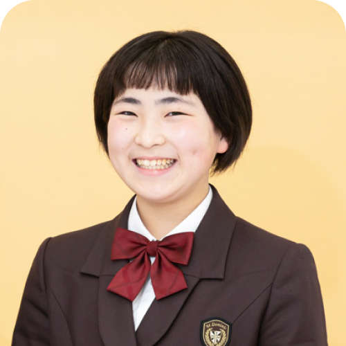 少人数であるため、一人ひとりの個性が輝けるのがおすすめです。また、新しいことに挑戦しやすい環境が揃っています。私自身も、初めて生徒会に挑戦することが出来ました。将来の夢に少しでも近づきたい、もっと自分の良いところを出したい、新しいことに挑戦したい中学生の皆さん、ドミニコでお待ちしています!